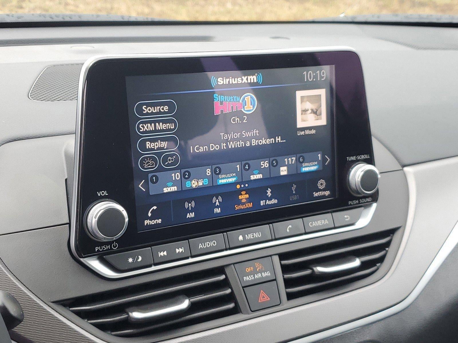 - Radio: AM/FM Audio System -inc: RDS, MP3 and aux-in, 6 speakers, NissanConnect 8" color display w/multi-touch control, Bluetooth® hands-free phone system, streaming audio via Bluetooth®, hands-free text messaging assistant, 2 front illuminated USB ports (1 type-A and 1 type-C) for compatible devices, Apple CarPlay, Android Auto, SiriusXM Radio, Siri Eyes Free, Google Assistant voice recognition and 2 rear illuminated USB ports (1 type-A and 1 type-C)