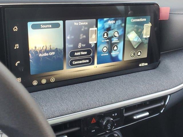 - Radio: AM/FM/SiriusXM Audio System -inc: 12.3" color touchscreen display w/4 speakers, Bluetooth® hands-free phone system, streaming audio via Bluetooth®, NissanConnect featuring wireless Apple CarPlay, wireless Android Auto, Siri eyes free and hands-free text messaging assistant, audio and Bluetooth® steering wheel switches