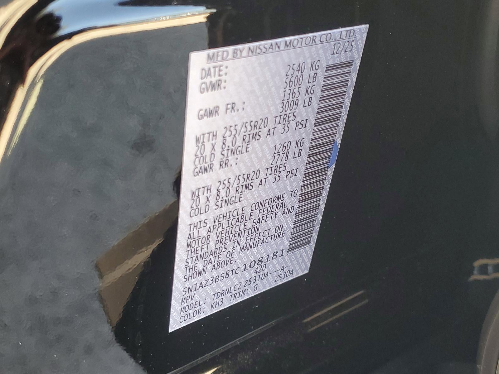 VIN: 5N1AZ3BS8TC108181